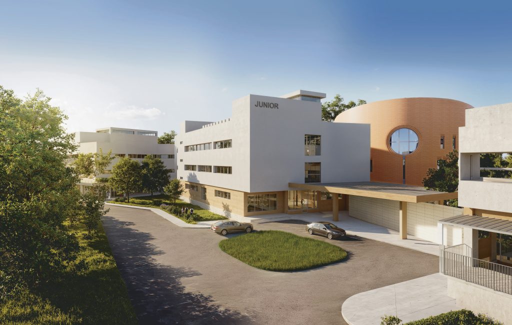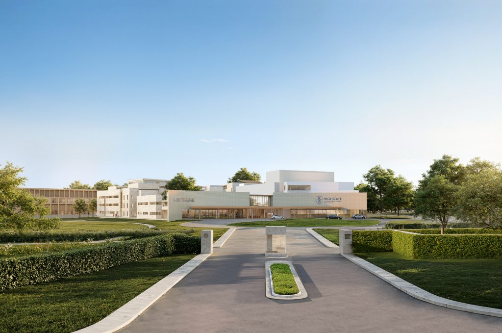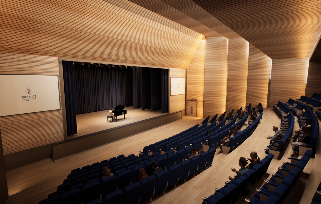 Images include those depicting Pre-Prep and Junior School buildings, the Library and Digital Media Centre and the Aquatics Centre, alongside the Auditorium, which is scheduled for delivery in 2027, as part of a second phase of development.